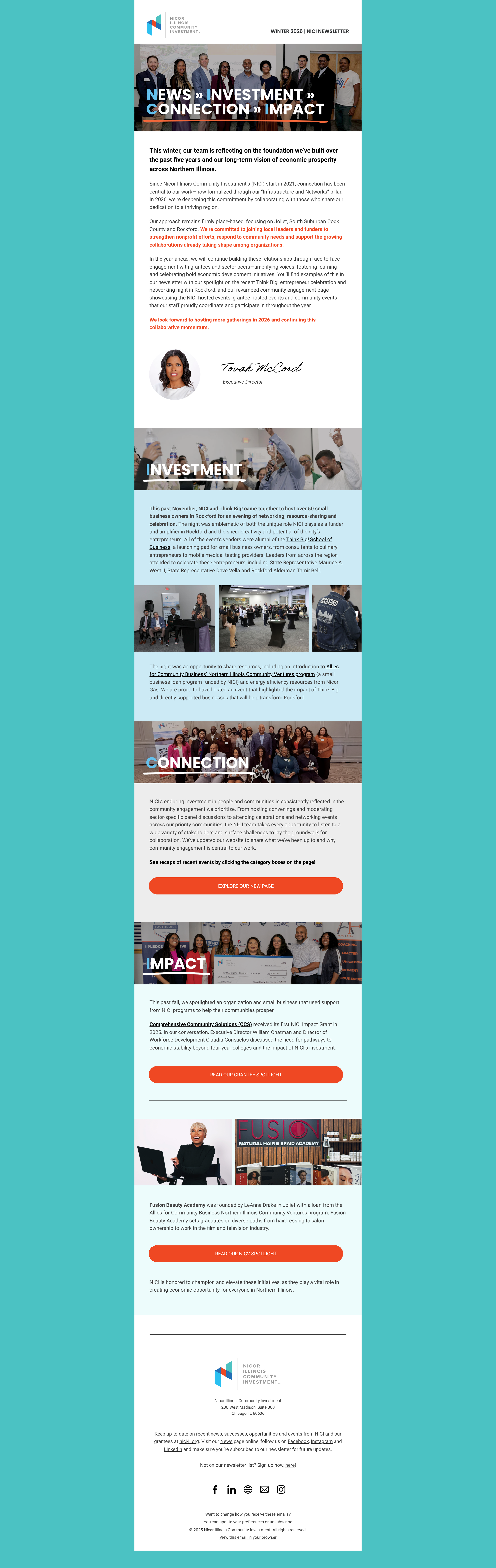 NICI's Winter 2026 Newsletter Feb 2 Written By Sarah Sommers The NICI Winter Newsletter celebrates five years of place-based investment. Sarah Sommers